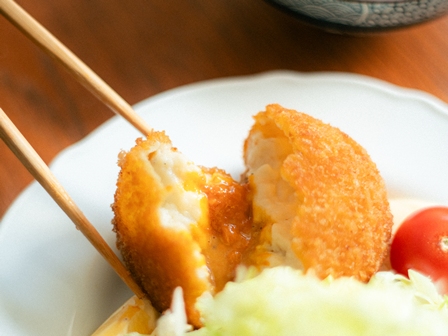 うにコロッケは、揚げたあと、ゆっくりと余熱で温めていくので、すぐに
